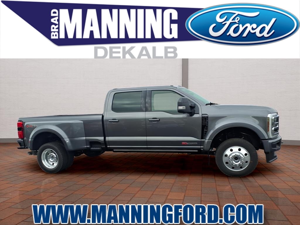 The Manning Family has been in the automobile business for over 100 years!2026 Ford F-450SD Platinum 4WD.Brad Manning Ford has been in the automobile business for over 100 years!!! Buy with peace of mind knowing most of our used vehicles come with a 90 day/ 3,000 mile powertrain warranty! Serving the communities of DeKalb, Sycamore, Rochelle, Elburn, Hinckley, Geneva, St Charles, Sandwich, Malta, Genoa, Hampshire, Aurora, Oswego, Oregon, Kirkland, Kingston, Waterman, and Shabbona. Camper Package, Ford Connectivity Package (1-Year Included), FX4 Off-Road Package, GVWR: 14,000 lb Payload Package, Internet access capable: 5G Modem - Ford Connectivity Package, 4WD, 19.5 Forged Polished Aluminum Wheels, 4-Wheel Disc Brakes, 410 Amp Dual Alternators, ABS brakes, Air Conditioning, Alloy wheels, Brake assist, Compass, Delay-off headlights, Dual front impact airbags, Dual front side impact airbags, Dual rear wheels, Electronic Stability Control, Emergency communication system: SYNC 4 911 Assist, Engine Block Heater, Front anti-roll bar, Front License Plate Bracket, Front reading lights, Fully automatic headlights, Heated door mirrors, Illuminated entry, Limited Slip w/4.30 Axle Ratio, Low tire pressure warning, Outside temperature display, Overhead airbag, Overhead console, Panic alarm, Passenger vanity mirror, Power door mirrors, Power steering, Power windows, Pro Power Onboard - 2kW, Rapid-Heat Supplemental Cab Heater, Rear anti-roll bar, Rear reading lights, Rear step bumper, Remote keyless entry, Security system, Speed control, Split folding rear seat, Steering wheel mounted audio controls, Tachometer, Telescoping steering wheel, Tilt steering wheel, Traction control, Trip computer, Turn signal indicator mirrors, Upfitter Switches (6), and Variably intermittent wipers.
