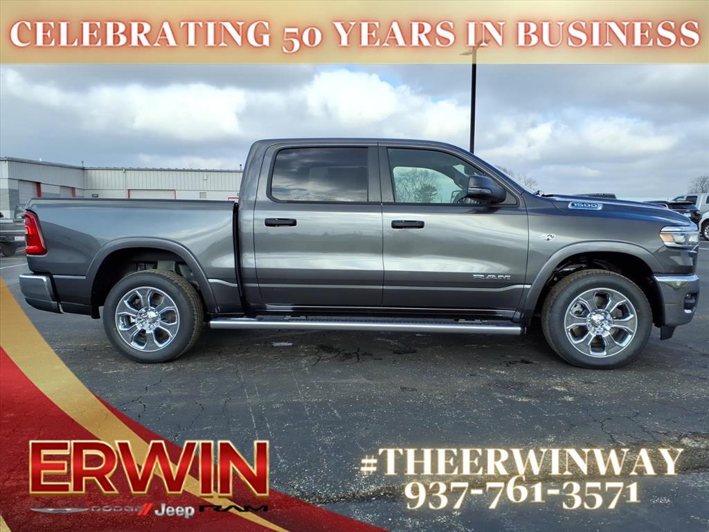 This 2026 RAM Crew Cab 4x4, 1500 Big Horn Vehicle is a state-of-the-art motorcar. It has a 5.7 liter 8 cylinder engine with sequential port fuel injection, and a granite crystal metallic clear coat (pau) exterior. It has a black (x9) interior and a crash test rating of 4 out of 5 stars. Vehicle features include touch screen display, Bluetooth audio connection, blind spot sensor, hill start assist, part time with on demand four wheel drive, Bluetooth phone connectivity, and more. This car is sure to turn heads on the road! Contact Details: Erwin Chrysler Dodge Jeep, 2775 S Co Rd. 25a, Troy, OH, 45373, pat@erwinchrysler.com, 9373355696.