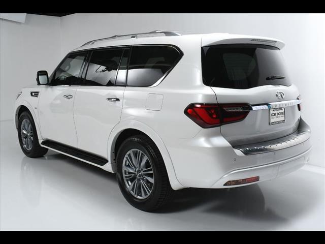 The QX80 rides on a high-stiffness frame structure that enhances ride comfort while reducing noise, vibration and harshness. The control hardware features an independent double-wishbone design front and rear, with Dual-Flow Path® twin tube shock absorbers and an automatic rear leveling system that seeks to maintain uniform ground clearance and departure angle, even when towing or carrying cargo, by automatically adjusting the air pressure in the system's air bladders.