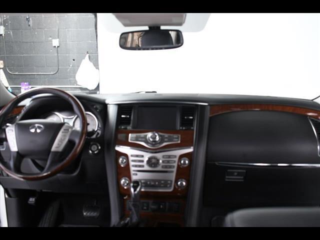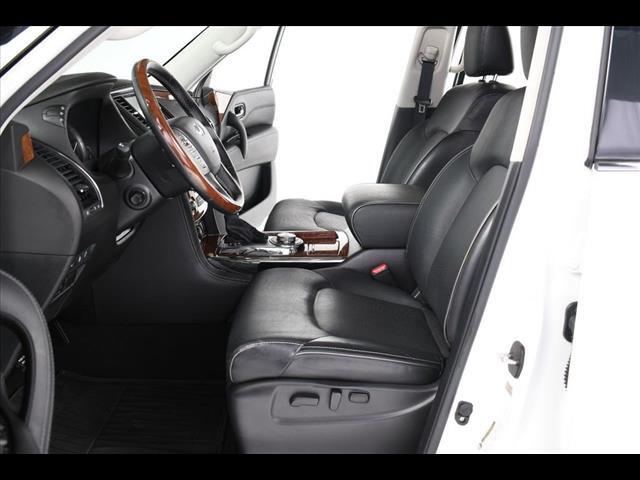 Inside the distinctive QX80 body is an interior long on luxury, including standard Infiniti Hard Drive Navigation System, Around View™ Monitor, Bose® 13-speaker Premium Audio System, available perforated semi-aniline leather seating and an available Tri-Zone Entertainment System with dual seven-inch color monitors, which allows different sources to be played at the same time. The QX80 also offers ample 1st row and class-leading 2nd row roominess.