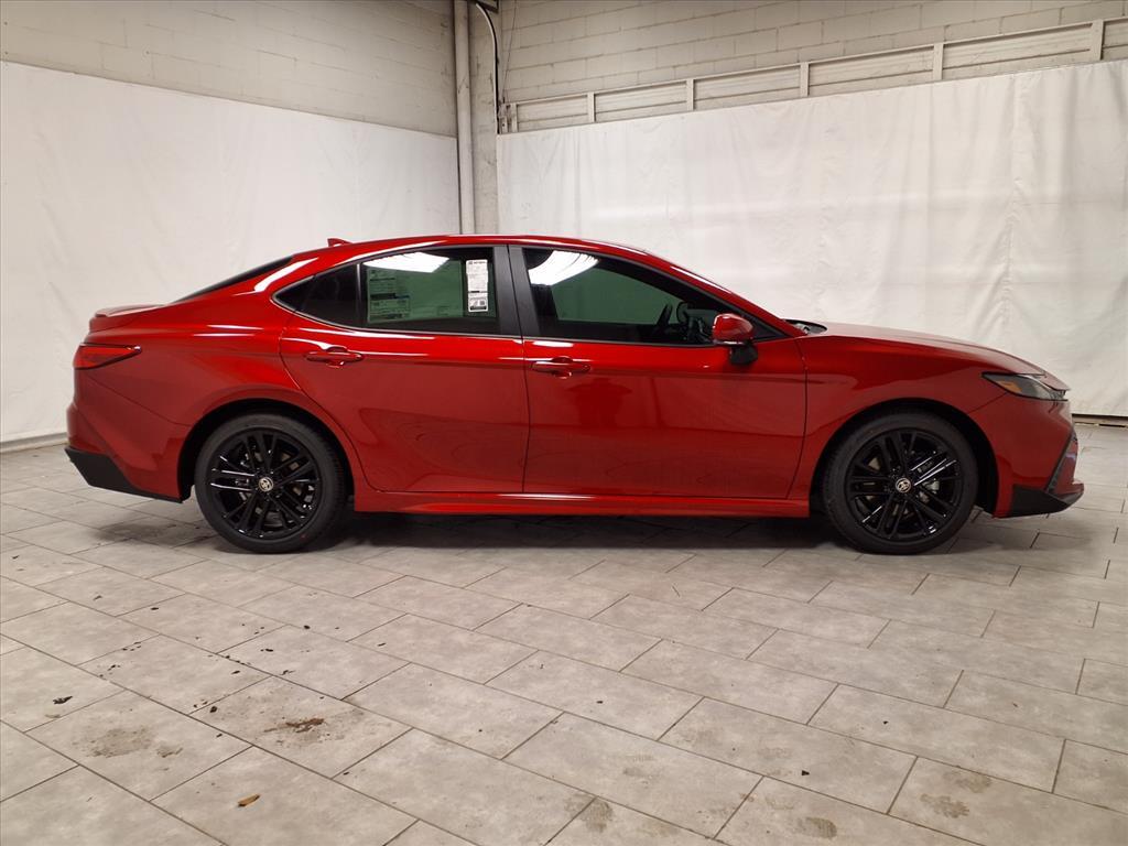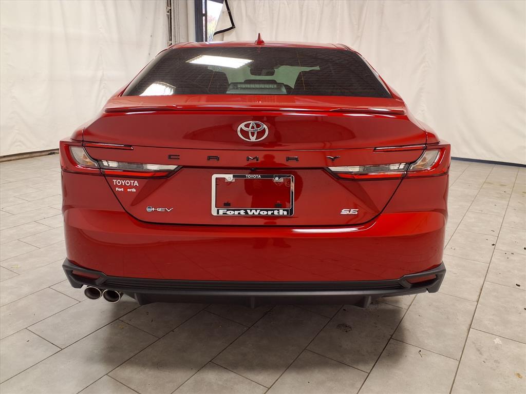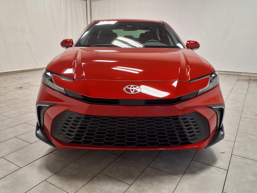 Red 2026 Toyota Camry SE FWD eCVT 2.5L 4-Cylinder 16V DOHC Black Artificial Leather. BLUETOOTH, BACKUP CAMERA, APPLE CARPLAY. 48/47 City/Highway MPG This vehicle comes equipped with: Convenience Package (Auto-Dimming Rearview Mirror with HomeLink and Smart Key System on Front Doors), Black Artificial Leather, 4-Wheel Disc Brakes, 6 Speakers, ABS brakes, Air Conditioning, Alloy wheels, AM/FM radio: SiriusXM, Apple CarPlay/Android Auto, Auto High-beam Headlights, Automatic temperature control, Brake assist, Bumpers: body-color, Delay-off headlights, Driver door bin, Driver vanity mirror, Dual front impact airbags, Dual front side impact airbags, Electronic Stability Control, Emergency communication system: Safety Connect (5-year trial), Exterior Parking Camera Rear, Four wheel independent suspension, Front Accent Lights, Front anti-roll bar, Front Bucket Seats, Front Center Armrest, Front dual zone A/C, Front reading lights, Front Seats, Fully automatic headlights, Heated door mirrors, Heated Front Seats, Illuminated entry, Knee airbag, Leather Shift Knob, Leather steering wheel, Low tire pressure warning, Occupant sensing airbag, Outside temperature display, Overhead airbag, Overhead console, Panic alarm, Passenger door bin, Passenger vanity mirror, Power door mirrors, Power driver seat, Power steering, Power windows, Radio data system, Radio: 12.3Toyota Multimedia Audio, Radio: 8Toyota Audio Multimedia, Rear anti-roll bar, Rear reading lights, Rear seat center armrest, Rear window defroster, Remote keyless entry, Security system, SofTex and Fabric Seat Trim, Speed control, Speed-sensing steering, Split folding rear seat, Spoiler, Steering wheel mounted audio controls, Telescoping steering wheel, Tilt steering wheel, Traction control, Trip computer, Turn signal indicator mirrors, Variably intermittent wipers, and Wheels: 18Multi-Spoke Black-Finished Alloy.