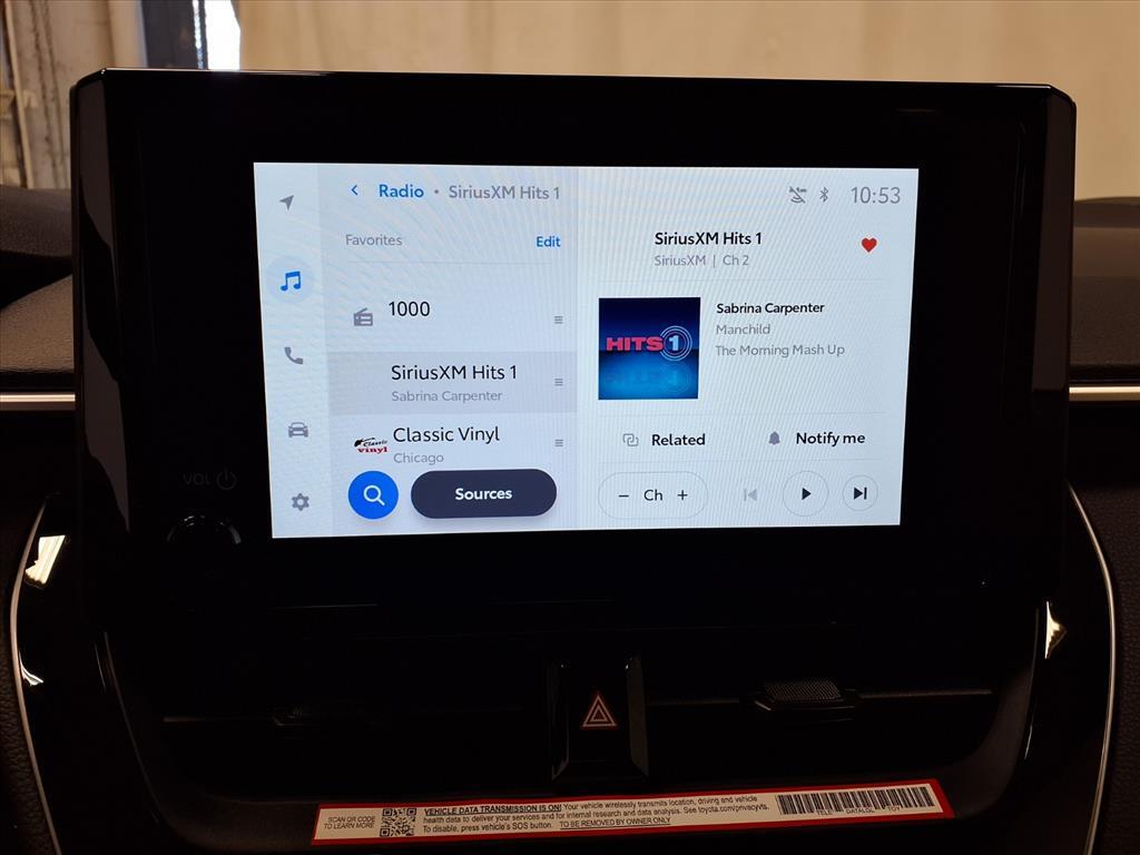 Underground 2026 Toyota Corolla Hybrid SE FWD eCVT 1.8L DOHC 16V VVT 1.8L DOHC 16V VVT. BLUETOOTH, BACKUP CAMERA, APPLE CARPLAY. 50/43 City/Highway MPG This vehicle comes equipped with: 1.8L DOHC 16V VVT, 4-Wheel Disc Brakes, 6 Speakers, ABS brakes, Air Conditioning, Alloy wheels, AM/FM radio: SiriusXM, Apple CarPlay/Android Auto, Auto High-beam Headlights, Automatic temperature control, Brake assist, Bumpers: body-color, Delay-off headlights, Driver door bin, Driver vanity mirror, Dual front impact airbags, Dual front side impact airbags, Electronic Stability Control, Emergency communication system: Safety Connect (up to 10-year trial subscription), Exterior Parking Camera Rear, Fabric Seat Trim, Four wheel independent suspension, Front anti-roll bar, Front Bucket Seats, Front Center Armrest, Front reading lights, Fully automatic headlights, Heated door mirrors, Illuminated entry, Knee airbag, Leather steering wheel, Low tire pressure warning, Occupant sensing airbag, Outside temperature display, Overhead airbag, Panic alarm, Passenger door bin, Passenger vanity mirror, Power door mirrors, Power steering, Power windows, Premium Front Sport Seats, Radio data system, Radio: 10.5Toyota Audio Multimedia, Radio: 8Toyota Audio Multimedia, Rear anti-roll bar, Rear seat center armrest, Rear side impact airbag, Rear window defroster, Remote keyless entry, Speed control, Split folding rear seat, Spoiler, Steering wheel mounted audio controls, Tachometer, Telescoping steering wheel, Tilt steering wheel, Traction control, Trip computer, Turn signal indicator mirrors, Variably intermittent wipers, and Wheels: 18Graphite-Colored Alloy.