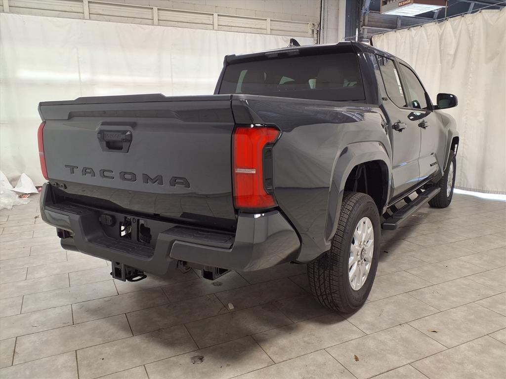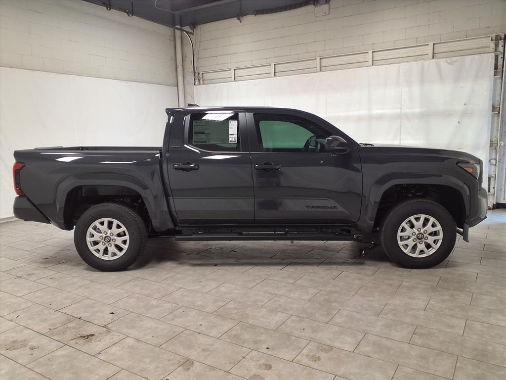 Underground 2025 Toyota Tacoma SR5 4WD 8-Speed Automatic 2.4L 4-Cylinder 4WD. BLUETOOTH, BACKUP CAMERA, APPLE CARPLAY. This vehicle comes equipped with: 4WD, 3.583 Axle Ratio, 4-Wheel Disc Brakes, 6 Speakers, ABS brakes, Air Conditioning, Alloy wheels, AM/FM radio: SiriusXM, Anti-whiplash front head restraints, Apple CarPlay/Android Auto, Auto High-beam Headlights, Auto-dimming Rear-View mirror, Brake assist, Bumpers: body-color, Driver door bin, Dual front impact airbags, Dual front side impact airbags, Electronic Stability Control, Emergency communication system: Safety Connect (1-year trial), Exterior Parking Camera Rear, Fabric Seat Trim, Four wheel independent suspension, Front anti-roll bar, Front Bucket Seats, Front Center Armrest, Front fog lights, Front reading lights, Fully automatic headlights, Heated door mirrors, Illuminated entry, JBL Premium Audio, Knee airbag, Low tire pressure warning, Occupant sensing airbag, Outside temperature display, Overhead airbag, Overhead console, Panic alarm, Passenger door bin, Power door mirrors, Power steering, Power windows, Radio: 8Toyota Audio Multimedia, Rear step bumper, Rear window defroster, Remote keyless entry, Speed control, Speed-sensing steering, Split folding rear seat, Spray-On Bed Liner (TMS), Steering wheel mounted audio controls, Tachometer, Telescoping steering wheel, Tilt steering wheel, Traction control, Trip computer, Variably intermittent wipers, and Wheels: 17Styled Alloy.